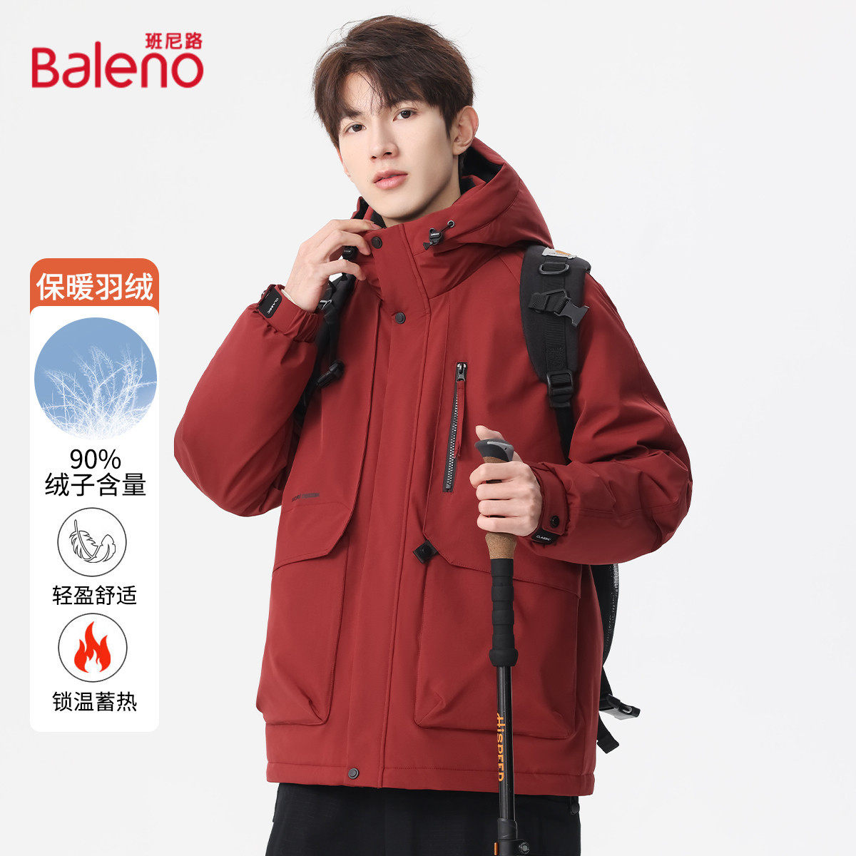 班尼路羽绒服男秋冬新款红色外套本命年夹克保暖男装衣服派克服J