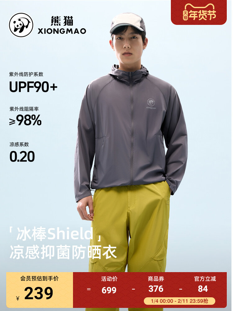 熊猫男装防晒衣2026新款春夏皮肤衣UPF90透气抑菌凉感薄款外套女