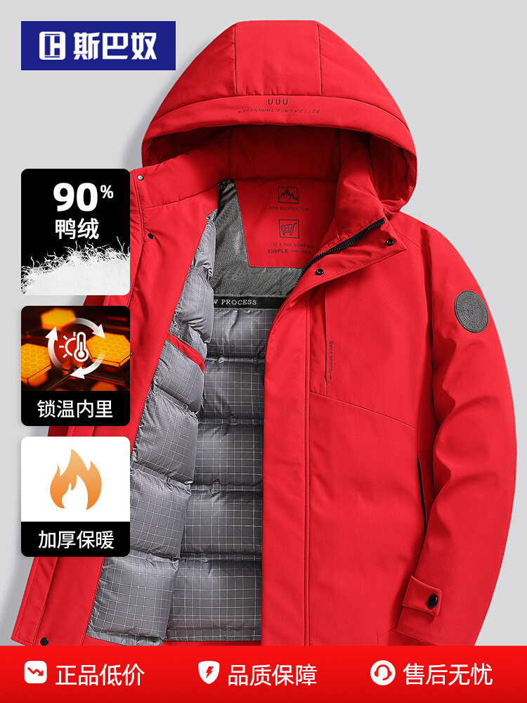 斯巴奴加厚90白鸭绒子红色羽绒服男装短款2025冬季新正品保暖外套
