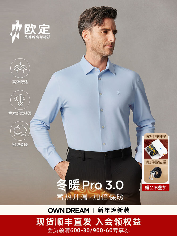 欧定头等舱长袖衬衫男新款浩空蓝色免烫商务定制衬衣
