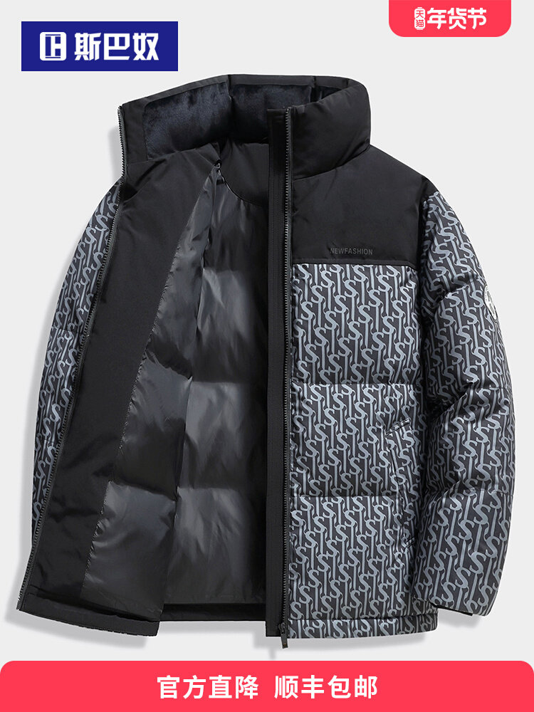 斯巴奴加厚拼色羽绒服男短款2025冬季新款立领面包保暖秋冬装外套