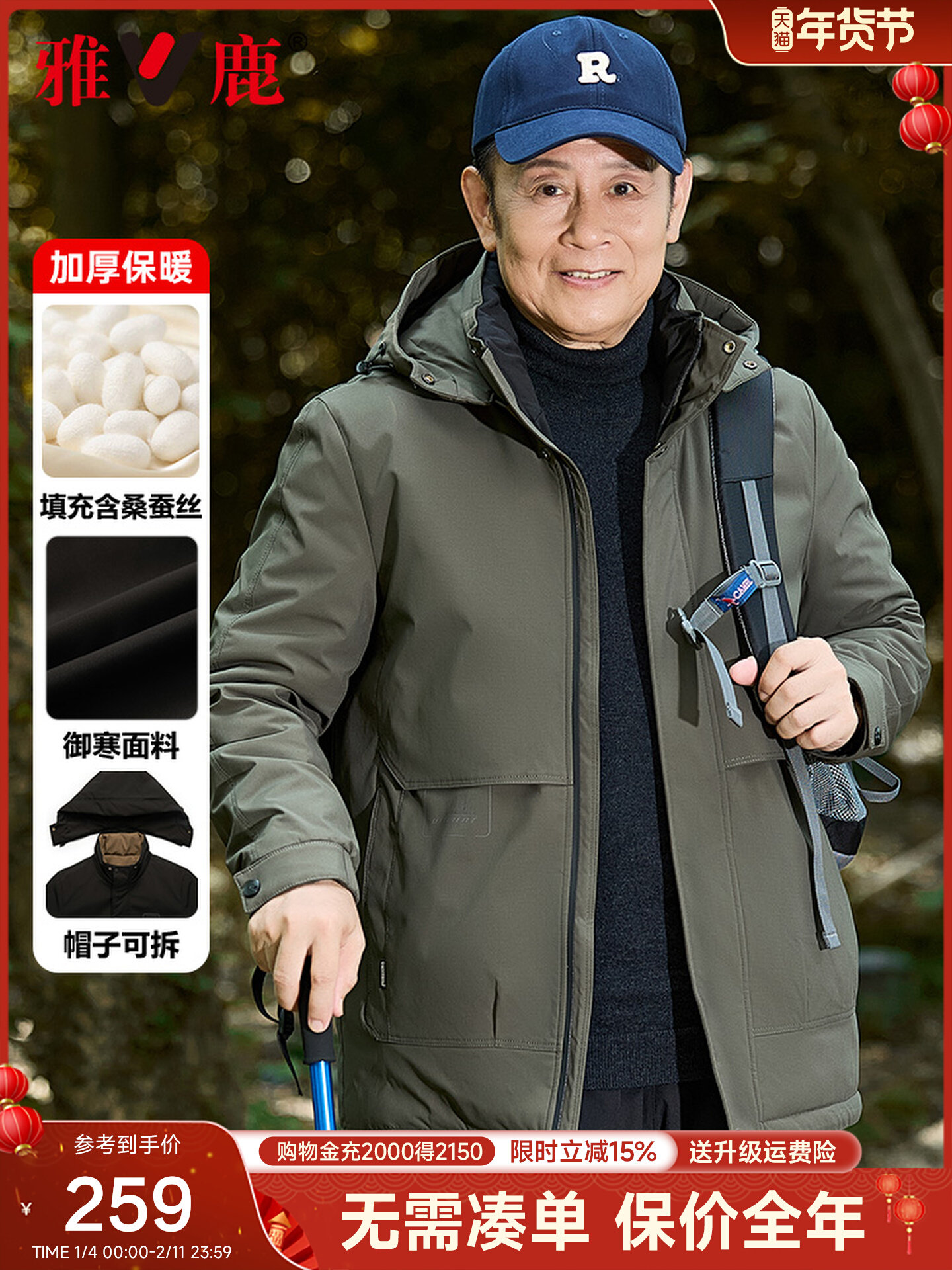 雅鹿中老年爸爸冬装棉衣男加厚2025新款桑蚕丝防风冬季棉袄服外套