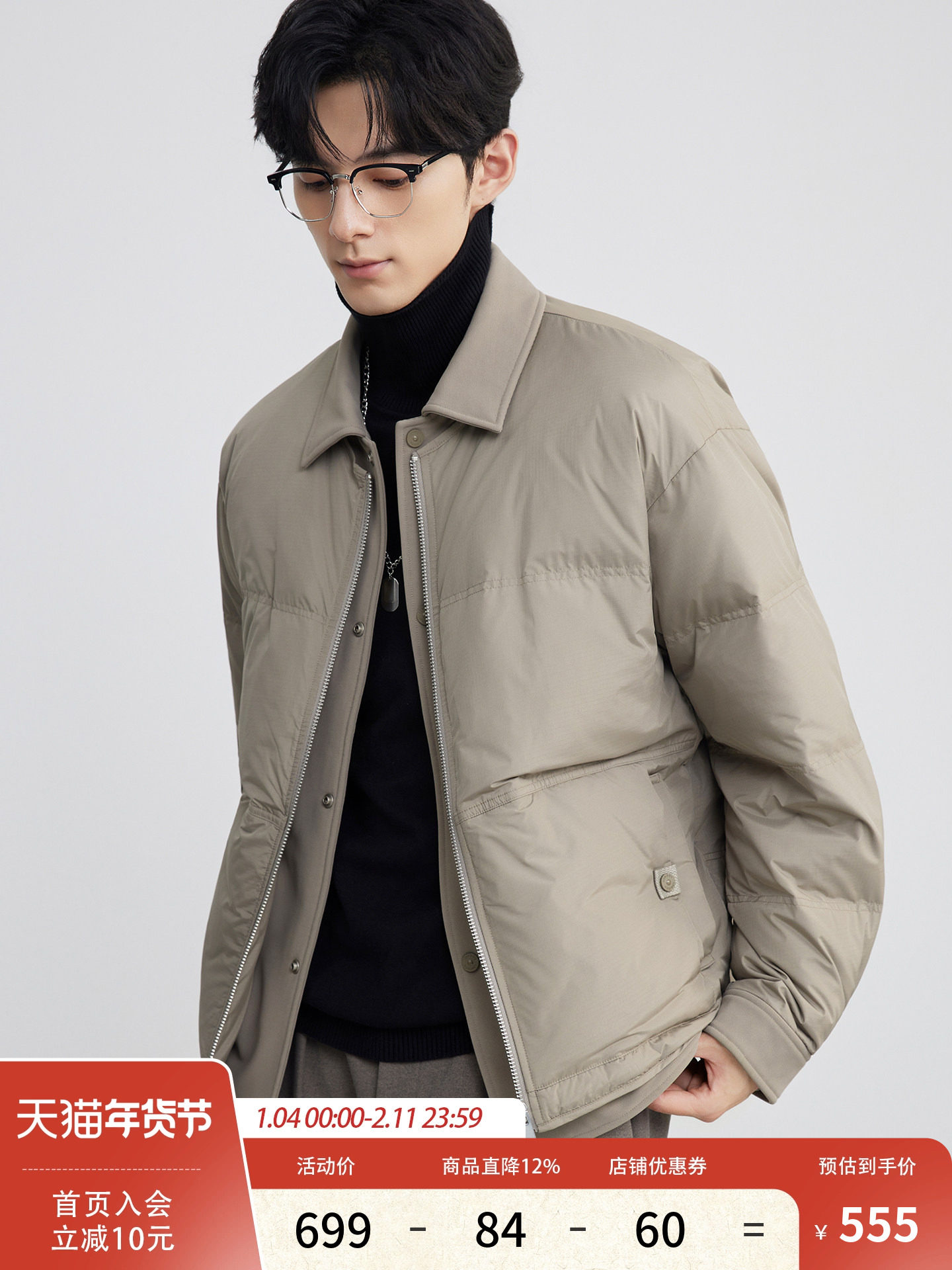 GXG男装休闲压印立领保暖短款羽绒服鸭绒外套男冬季