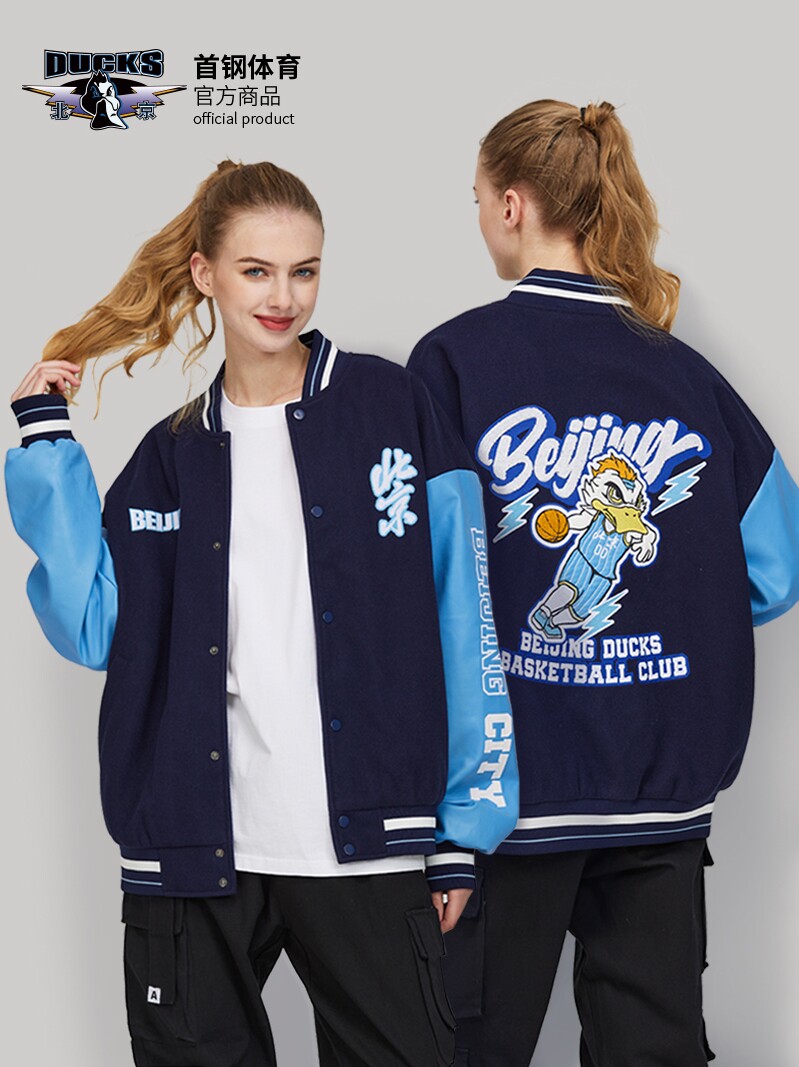 北京首钢篮球俱乐部 | 秋冬蓝黑棒球外套刺绣百搭