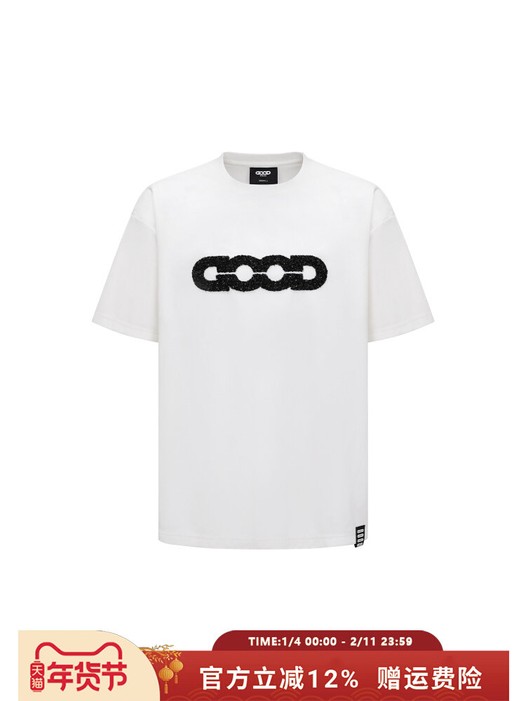 GB-GOODBRAND 2025SS GOOD破碎感珠片绣轻盈高级美式丝绒LOGOT恤
