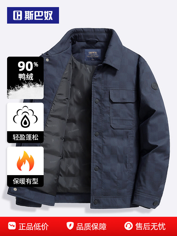 斯巴奴轻薄格子衬衫羽绒服男装短款2025秋冬季新翻领保暖夹克外套