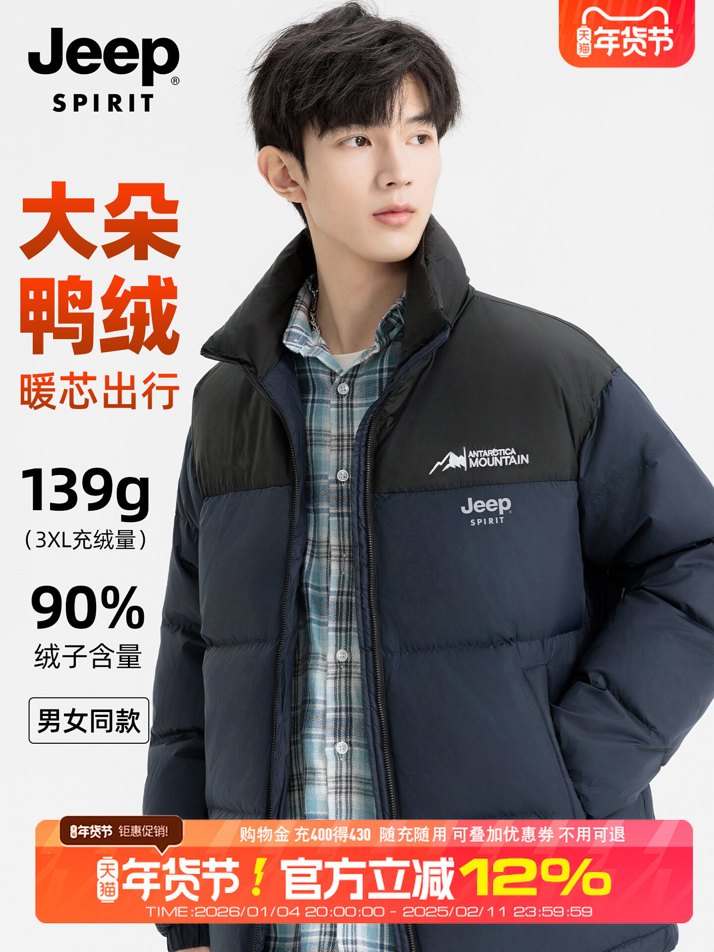 吉普官方加厚羽绒服男士冬季新款户外保暖工装青少年冬装外套男款